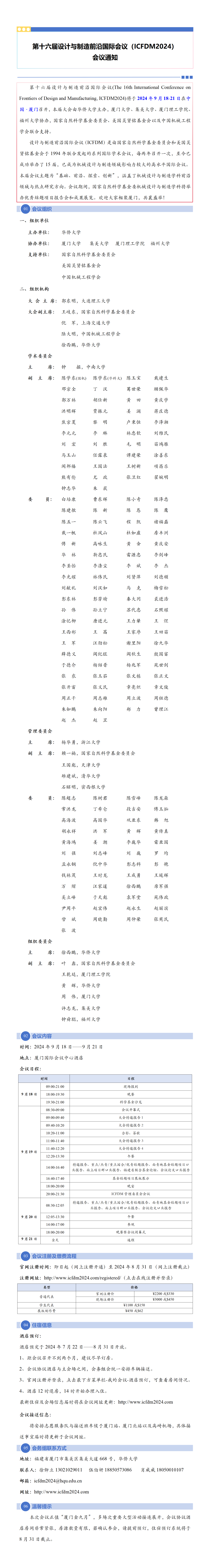 第十六届设计与制造前沿国际会议(ICFDM2024)会议通知