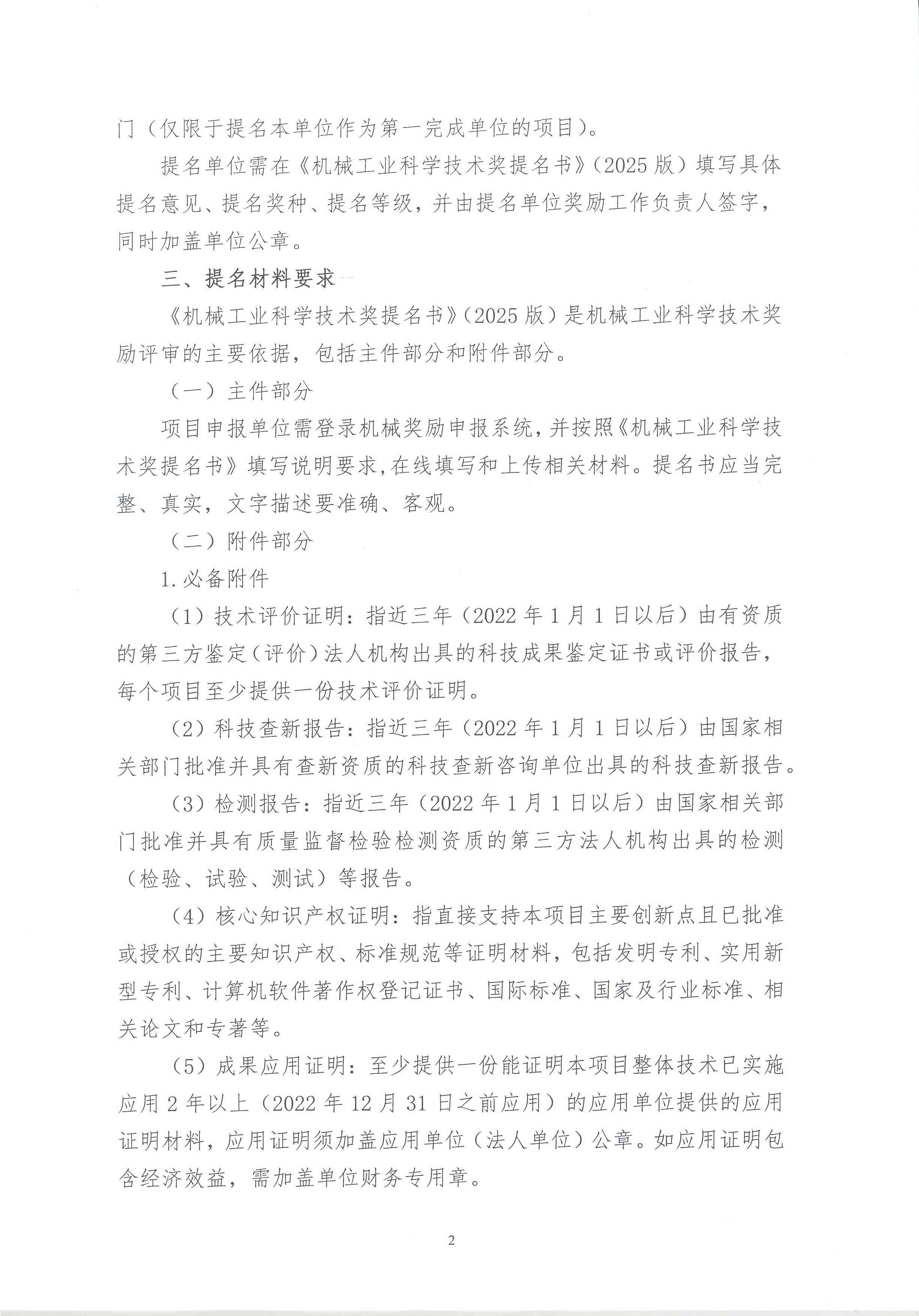 关于开展2025年度“机械工业科学技术奖”提名工作的通知