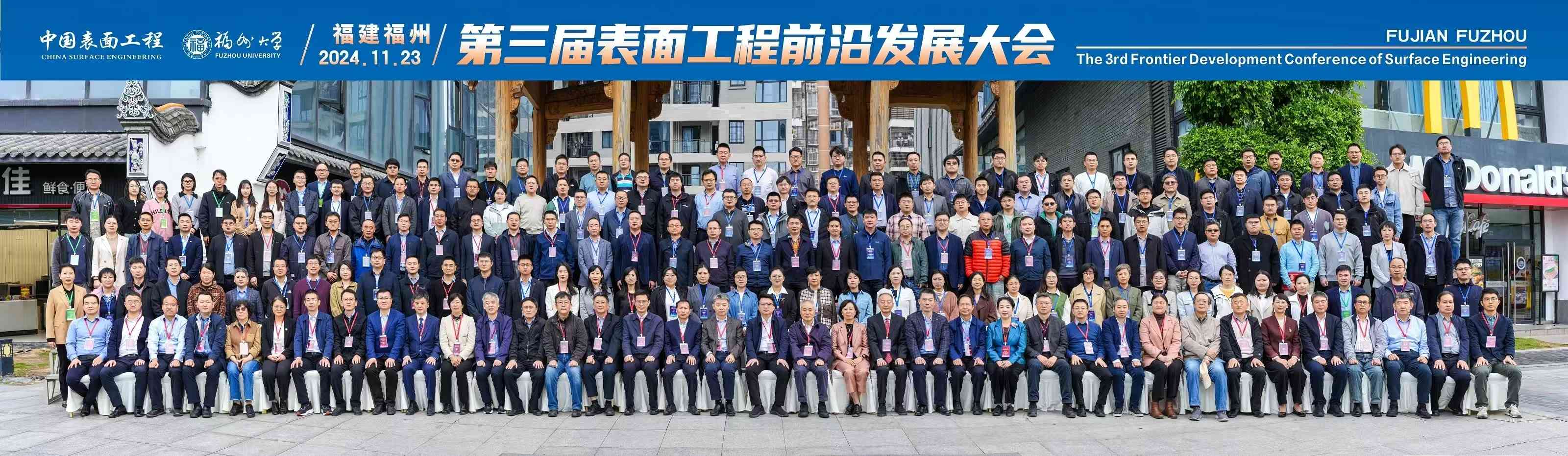 2024年11月22-24日,第三届表面工程前沿发展大会在福州顺利召开。会议由中国机械工程学会、机械工业信息研究院指导,《中国表面工程》编辑部主办,福州大学承办。中国机械工程学会副理事长王国彪教授,福州大学副校长郭文忠教授,中国机械工程学会副秘书长陈超志教授级高工,中国机械工程学会兼职副秘书长王淑芹编审,《中国表面工程》主编、清华大学邵天敏教授,《中国表面工程》副主编、再制造技术国家重点实验室谭俊研究员等约300位表面工程领域专家学者及相关领域企业参加了本届大会。福州大学人事处处长钟舜聪教授主持大会开幕式。