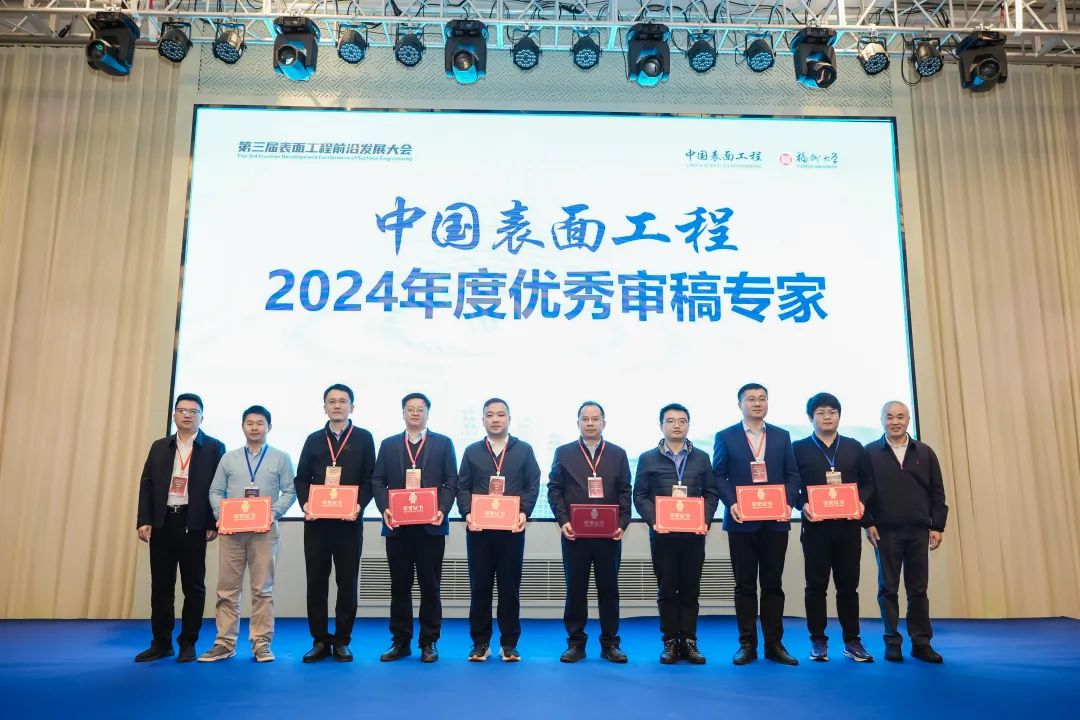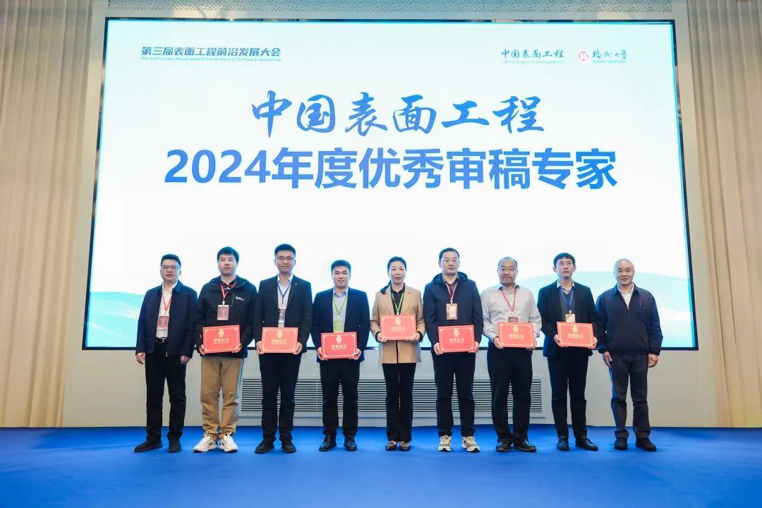 开幕式期间还举行了《中国表面工程》2024年度优秀审稿专家、2023年度优秀论文的证书颁发仪式。陈超志宣读了《中国表面工程》2024年度优秀审稿专家名单,王国彪、郭文忠为获奖者代表颁发获奖证书。王淑芹宣读了《中国表面工程》2023年度优秀论文名单,邵天敏、谭俊为获奖代表颁发了获奖证书。