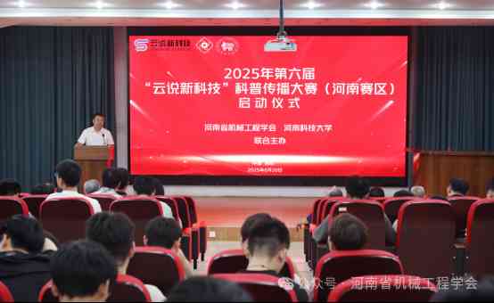 河南科技大学机电工程学院院长谷瑞杰教授致欢迎辞,详细介绍了学院在智能制造、工程教育等领域的成果,并强调了校企合作对科技创新的重要支撑作用。河南省机械工程学会秘书长李剑在致辞中重申了大赛的宗旨,提出通过科普创作提升科技工作者综合能力的目标。学会监事长马伟宣布2025年第六届云说新科技科普传播大赛(河南赛区)正式启动,强调大赛对机械工业发展和创新型国家建设的战略意义。