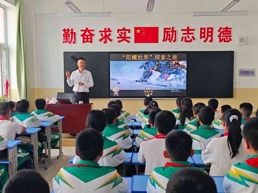 苏州大学机电工程学院教授王呈栋以《“陀螺世界”探索之旅》为题,为大家带来了精彩的机械科普讲座及模型插件课堂,手把手教小朋友们制作工程陀螺科技模型。