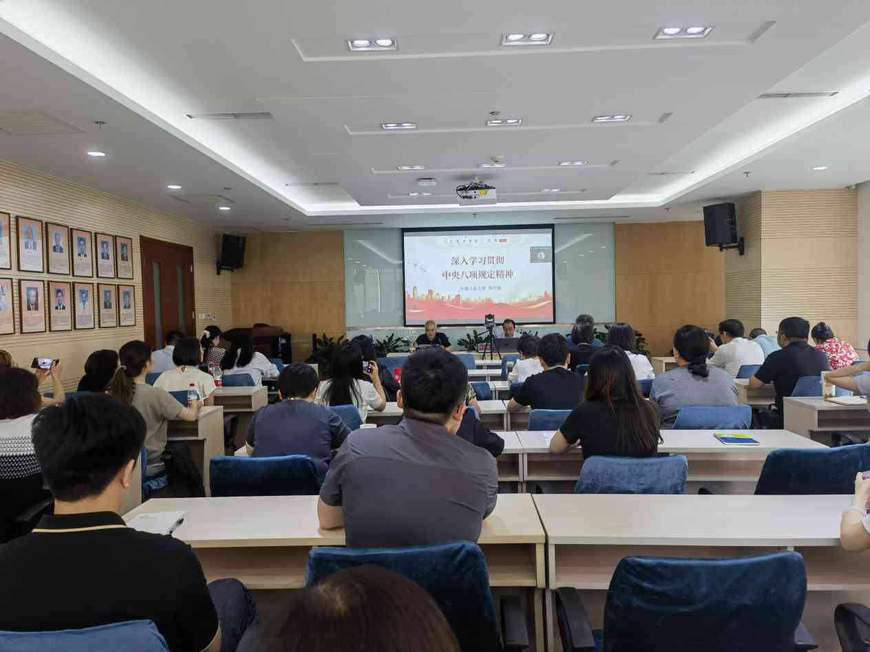 吴付来教授以其深厚的学术造诣与丰富的工作经历,从中央八项规定的主要内容、历史渊源、出台过程、出台原因、贯彻落实情况以及推进风腐同查同治等方面,深入分析了中央八项规定及其实施细则精神的科学内涵、实践要求和时代价值。他指出,中央八项规定为全党树立了作风建设的标杆,彰显了党中央全面从严治党的决心和信心。他深刻剖析了党的作风建设的重要性,强调党中央通过持续纠治“四风”问题,推动了全面从严治党向纵深发展。这一过程不仅是制度的完善,更是党员思想认识的深刻转变,彰显了党自我净化、自我完善、自我革新、自我提高的能力。