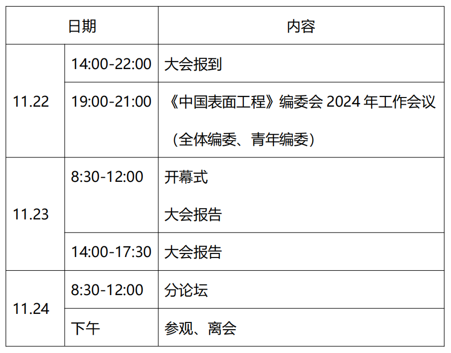 表面工程是支撑我国高端装备制造和基础制造技术等国家重大工程及战略性新兴产业必不可少的基础技术。为充分发挥期刊“引领学科发展,推动成果转化”的关键作用,增强我国表面工程领域的广泛交流,聚焦前沿,提升表面工程相关技术创新水平,《中国表面工程》编辑部组织第三届表面工程前沿发展大会。本次大会主题为:“面向新质生产力的高效表面工程技术”。热忱欢迎表面工程领域的专家、学者和企业界人士积极参会,共话新发展、新机遇、新挑战,促进表面工程领域最新研究成果交流和学术思想碰撞,实现高水平科技自立自强。