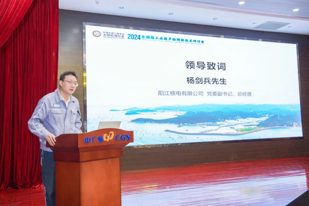 阳江核电有限公司党委副书记、总经理杨剑兵先生发表致辞。他指出核安全是核事业发展的生命线,是生态环境保护的重要领域,是国家安全的重要组成部分,事关中国式现代化全局,阳江核电致力于提升核安全从万无一失做到绝无一失,希望此次会议能为与会者提供一个高端、专业、开放的核电技术交流平台。
