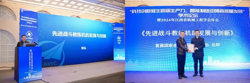 江西洪都航空工业有限公司副总经理周继强先生(代张弘总师)作专题报告,黄志超教授颁发证书
