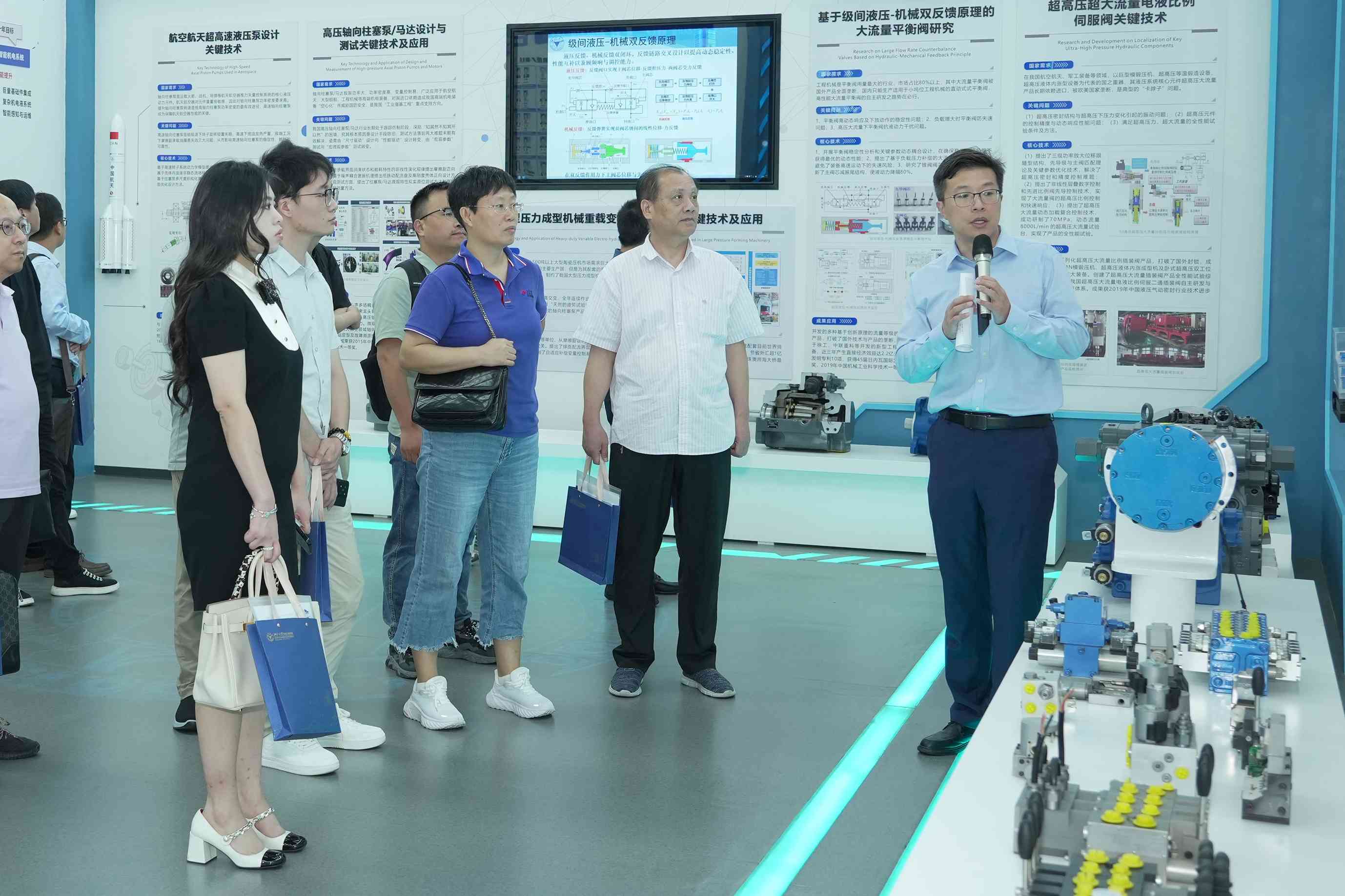 会后,在陈哲教授的导览讲解下,与会代表参观了浙江大学流体动力基础件与机电系统全国重点实验室展厅,对盾构、IC制造装备、航空航天、工程机械等高端装备的关键科技问题攻关与相关研究成果有了更加直观的了解。