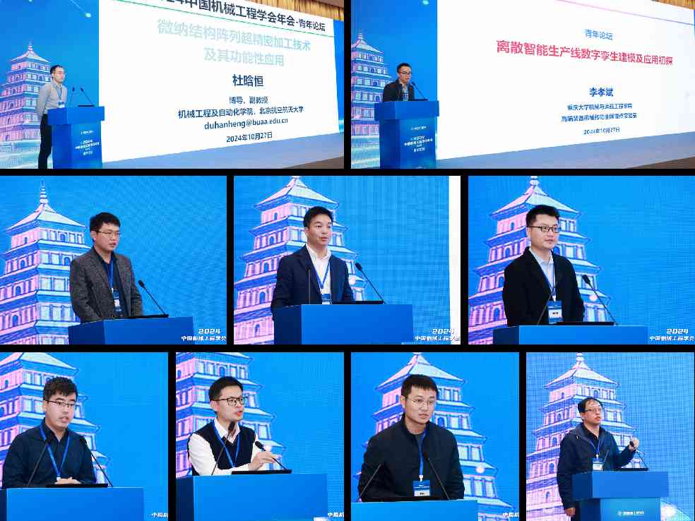 2024年10月27日,中国机械工程学会青年论坛在西安与年会同期举办。论坛邀请到中国机械工程学会副理事长兼秘书长毛明院士参会并做报告,中国机械工程学会副监事长、华东理工大学涂善东院士,清华大学邵天敏教授,西北工业大学苑伟政教授,哈尔滨工业大学陈明君教授参会,并为每位青年报告学者点评。论坛得到了西安交通大学机械工程学院、西北工业大学机电学院的大力支持。西安交通大学机械工程学院雷亚国教授、西北工业大学机电学院常洪龙教授主持会议。来自全国机械工程领域的15名优秀青年学者从微纳制造、机器人智能控制、高端装备寿命预测和优化、数字孪生建模、阀控系统、特种阀门检测、仿生4D打印、增材制造、传感器等领域分享了其在科研和技术领域的最新成果,吸引了机械工程青年科技工作者90余人参加。