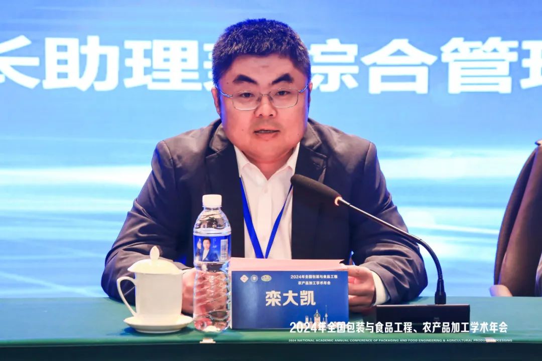 栾大凯处长代表会议指导单位中国机械工程学会对本次会议的召开表示热烈祝贺。他指出,2024年对包装与食品工程分会来说是一个具有里程碑意义的年份,一是分会成立35周年,标志着分会已经从初创走向了成熟和壮大;二是分会第八届委员会正式成立,标志着分会又将进入一个新的发展阶段。同时,他肯定了包装与食品工程分会在学术交流、会刊出版、智库成果、学科建设、标准化工作以及教育培训等方面所做的工作,并希望分会能够积极搭建学术交流和科技服务平台,加强与地方政府、科研机构、行业企业的合作,推动重大技术创新,为包装与食品加工和装备技术的转型升级提供有力支持,为包装与食品产业的高质量发展注入新动力。