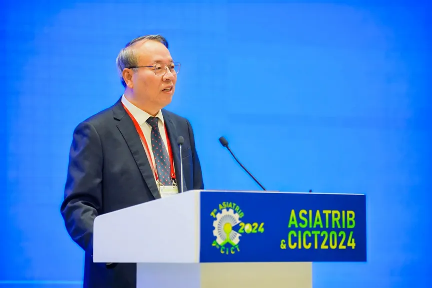 第七届亚洲国际摩擦学大会暨第九届中国国际摩擦学大会(ASIATRIB & CICT2024)于2024年9月15-18日在天津召开。大会由中国机械工程学会摩擦学分会主办、清华大学天津高端装备研究院承办,西南交通大学、清华大学高端装备界面科学与技术全国重点实验室、华海清科股份有限公司等7家单位鼎力协办。大会受到全球摩擦学领域专家学者的高度关注,来自中国、日本、韩国、印度、美国、英国、瑞士、瑞典、德国、巴西等来自25个国家/地区、800余名国内外代表参会,探讨最新前沿科技、互通学科创新思路,共促世界摩擦学应用技术升级与产业发展。