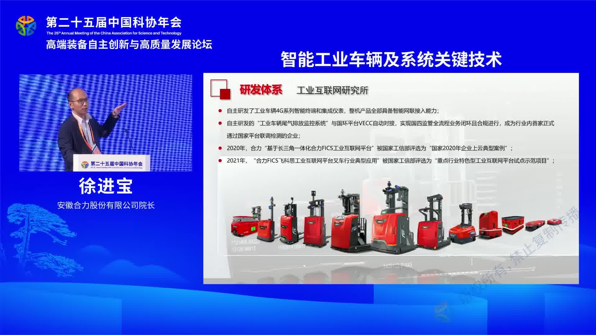 本视频为安徽合力股份有限公司徐进宝院长在第二十五届中国科协年会——高端装备自主创新与高质量发展论坛上所做的报告。(2023年10月21日)