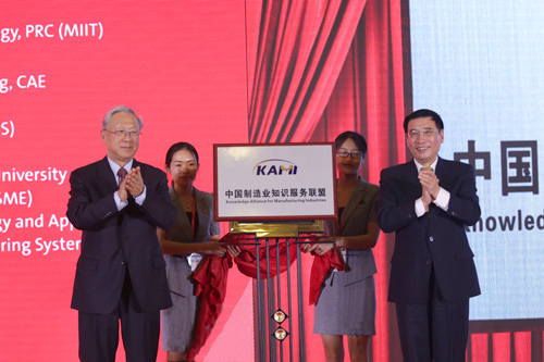 中国制造业知识服务联盟正式成立于2016年5月11日,由中国机械工程学会荣誉理事长路甬祥院士与工业和信息化部部长苗圩共同为联盟揭牌。